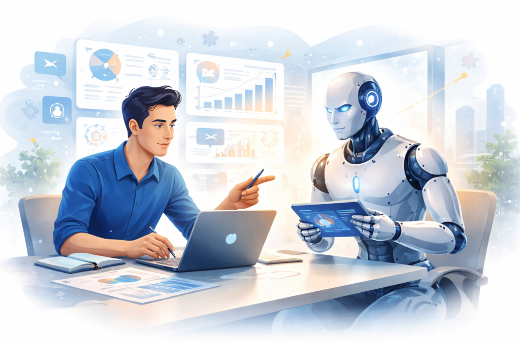Este artigo analisa se a Inteligência Artificial vai substituir ou potenciar pessoas, explorando impacto no mercado de trabalho, competências essenciais, riscos de dependência e estratégias para adaptação. Conclui que a IA amplifica capacidades humanas quando usada estrategicamente, mas pode substituir tarefas operacionais e repetitivas.